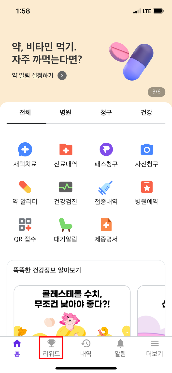 다른건 다 필요없고 우선 하단에 있는 리워드를 눌러줍니다.