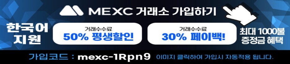 MEXC 공식파트너 평생 수수료 50% 할인+30% 페이백 혜택 받기 [가입]