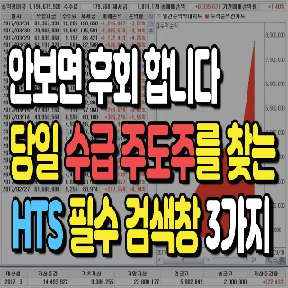 이번 시간에는 당일 수급 주도주를 쉽게 찾을 수 있는 필수 HTS 검색창 3가지를 알려드리겠습니다.