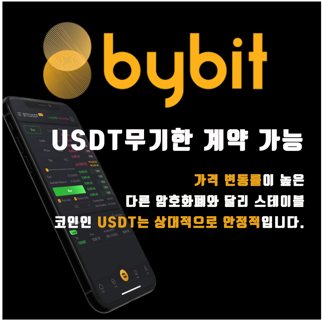 바이비트는 비트코인 BTC외에 USDT 라는 준안전자산으로 거래 할수 있어 비트코인 시세변동에 대한 안정성이 높다고 할 수 있겠습니다.